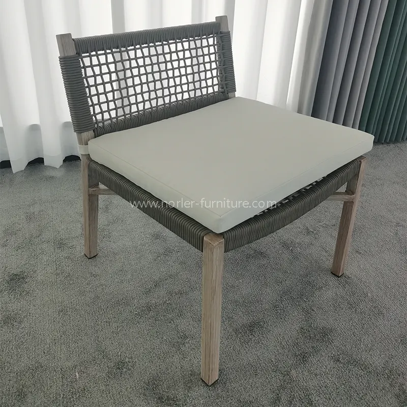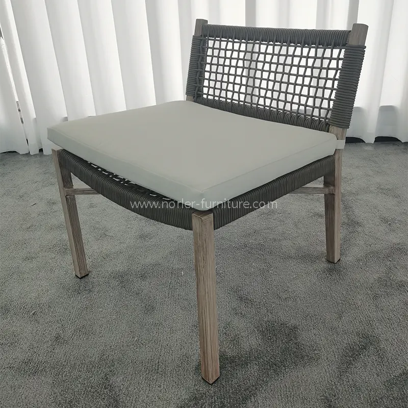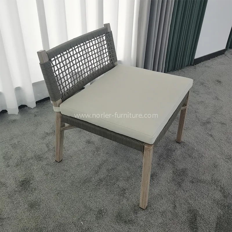 China Norler aluminium aluminium Ziarno Ziarna Ziarna Pasowa krzesło zewnętrzne wykorzystuje aluminiową ramę ze stopu aluminium i powierzchnię pomalowaną w sprayu drewna, która jest zarówno piękna, jak i wytrzymała. Powierzchnia siedzenia wykonana jest z tkanej wysokiej wytrzymałości, które są wygodne i oddychające. Jest wyposażony w wodoodporną poduszkę do tkaniny, która jest odporna na słońce, trwały i łatwy do czyszczenia. Projekt jest prosty i stylowy, odpowiedni dla różnych środowisk zewnętrznych, takich jak balkony i ogrody!