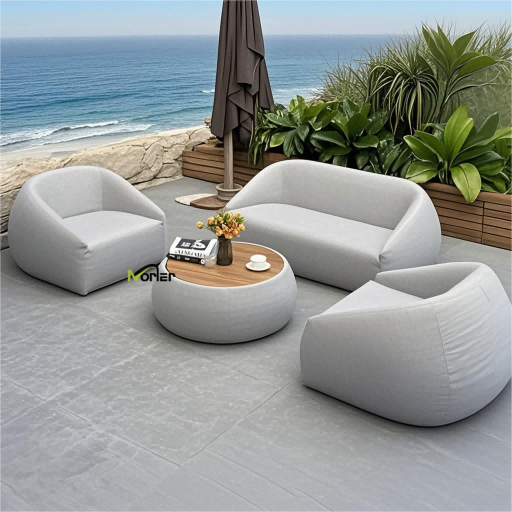 3. Tapicerowana sofa ogrodowa: komfort dla leniwej osoby, z miękkimi, grubymi poduszkami i szybkoschnącymi materiałami, dzięki czemu wygodnie jest leżeć lub siedzieć.